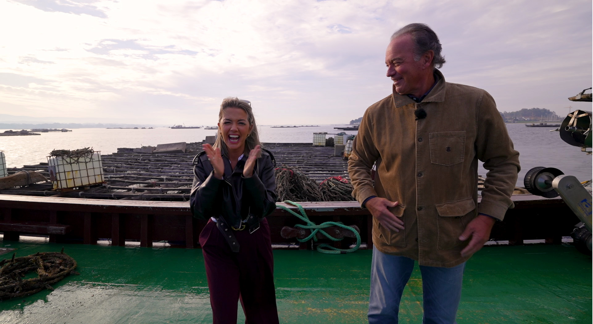 A seguinte experiencia terá sabor a mar. No peirao de Vilanova de Arousa, os dous protagonistas subirán ao barco de Marcos Leiro, bateeiro con máis de tres décadas de oficio. Xa no medio da ría, explicaralles o proceso de cultivo e os meses de espera. Pero sempre é mellor vivilo que contalo, así que Marcos ensinará de preto como extraen o mexillón. Tanto a rianxeira como o andaluz quedarán fascinados polo esforzo e dedicación que requiren as bateas. Ademais, probarán a bordo os mexillóns frescos cocidos, un verdadeiro privilexio.