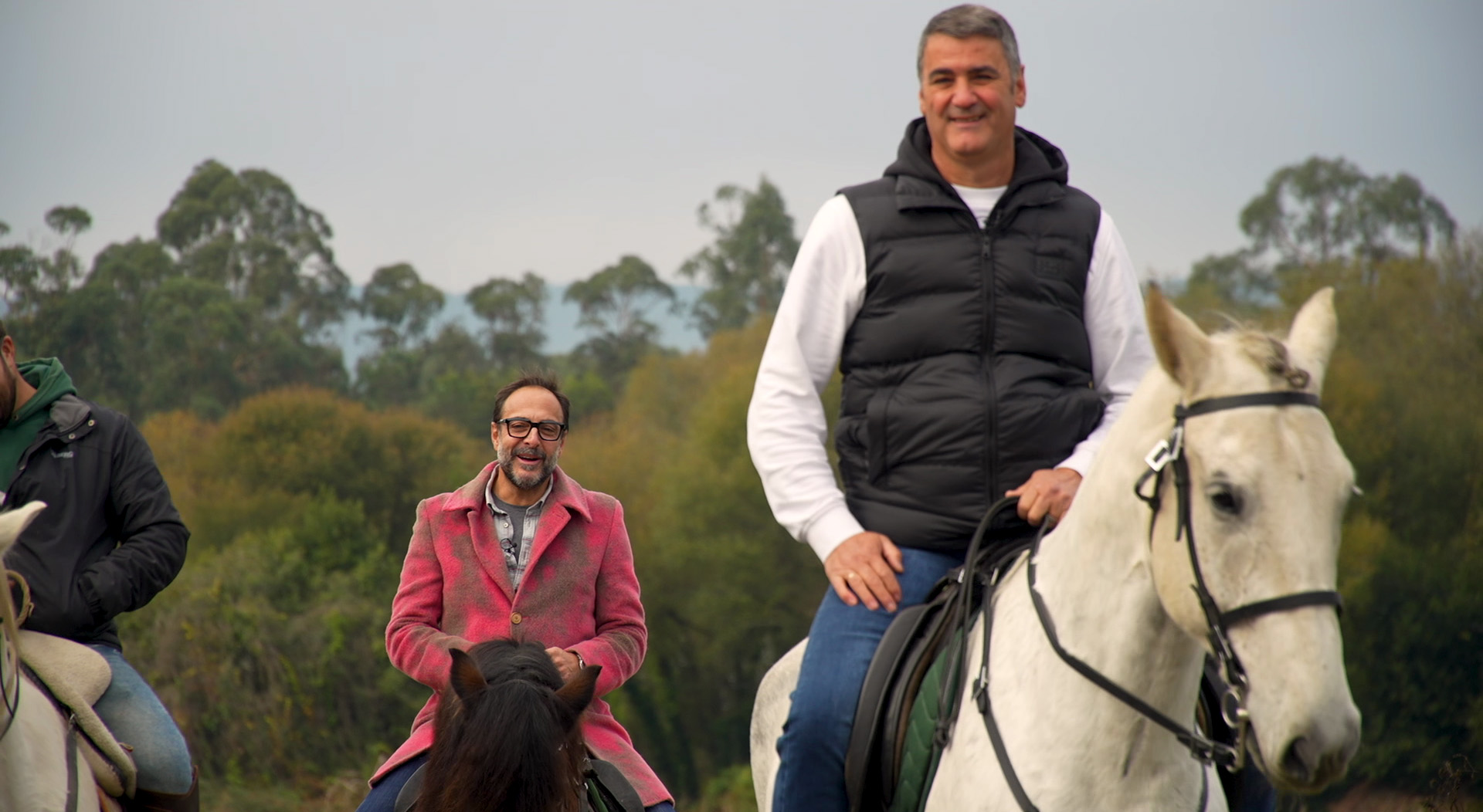 A proposta de montar a cabalo abrirá un dos momentos máis cómicos do programa. Roberto intentará negociar desde o primeiro segundo, e Jesulín, máis lanzado, lembrará tamén algúns sustos serios do pasado, con caídas incluídas, pero subirá igualmente. A estampa será impagable, con Roberto nun cabalo diminuto, case rozando o chan cos pés, e ao seu carón, e o extoureiro no lombo dun fermoso cabalo branco.