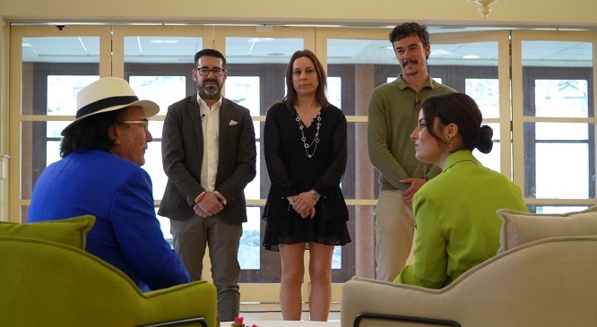 A súa relación co viño vén de lonxe, ligada á tradición familiar no sur de Italia. Desde 1973 el mesmo elabora viños e chegou a abrir tres adegas, consolidando un vínculo profundo cun mundo que agora redescobre en Galicia. A súa chegada a Santiago esperta expectación, con ducias de persoas que se achegan saudalo. No paseo polas rúas compostelás, o artista revive tamén a súa historia con España e mesmo deixa caer o seu desexo de ofrecer un concerto na praza da Quintana.